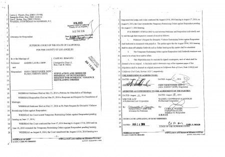 2人によってサインされたアンバーのジョニーへの訴えを取り下げるという裁判書類。