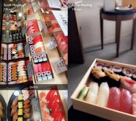 デパ地下に立ち寄ってお寿司を購入したスコット。ホテルの部屋に持ち帰って堪能していた。