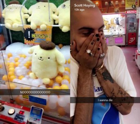 ふらりと立ち寄ったゲームセンターで「太鼓の達人」やUFOキャッチャーを楽しんだスコット&ミッチ。ミッチはポムポムプリンのぬいぐるみがなかなか取れず、悔しそうに何度も挑戦していた。