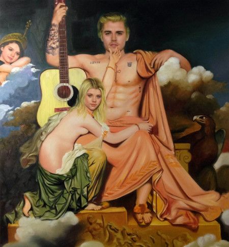 ソフィアの誕生日に合わせて公開された、有名アーティストのNobilifiedによるジャスティンとソフィアの肖像画。背後にはジャスティンの元恋人セレーナ・ゴメスの姿も。