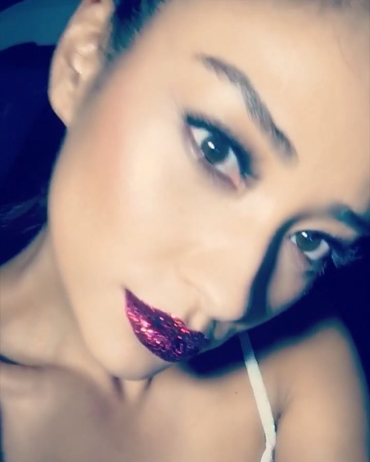 新しいコスメは積極的にトライしてみる、ドラマ『プリティ・リトル・ライアーズ』の女優のシェイもグリッターリップの魅力にハマっている。