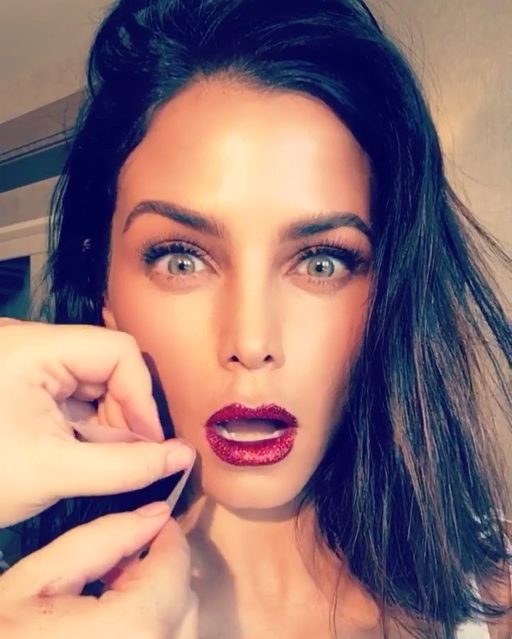 Atelier Versaceのランウェイを歩いた際にグリッターリップを体験したモデルのベラは、すっかりこのメイクの虜に。