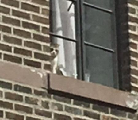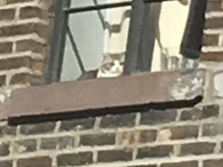 メレディスは窓の端に座り、ファンのほうをじっと凝視。10分ほどにらめっこを続けると飽きたかのように去っていった。