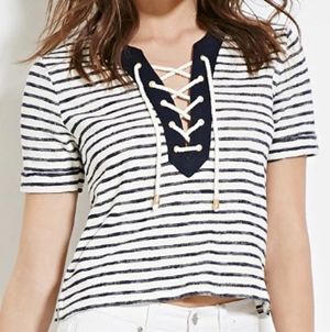 Forever21 ボーダーレースアップトップ 1,790円(税抜き)