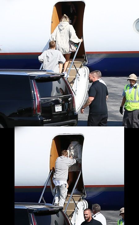 LAの空港で、ジャスティンがソフィアを押しながら飛行機の中へ。
