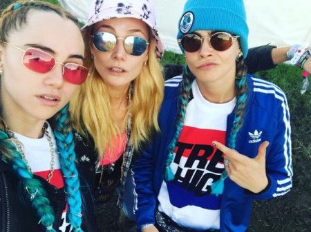 一緒にフェスに参戦したモデル兼女優のカーラとモデルのスキは、イギリスにあるセレブ御用達サロンThe Braid Barでブルーのエクステを編んでおソロいヘアスタイルに。