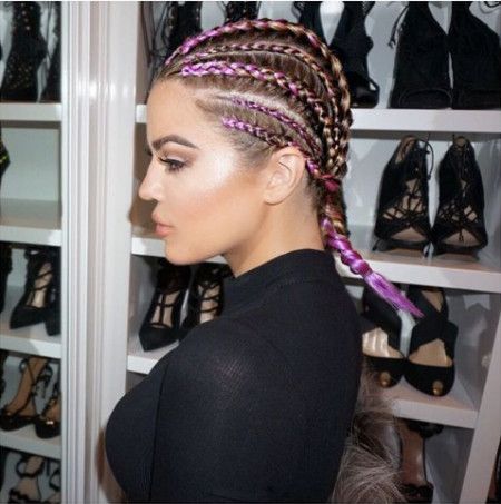 リアリティースターのクロエは、パープルのカラーエクステと一緒にキツめのボクサーブレイズに。一本にまとめた毛先がパープルなのが可愛い。