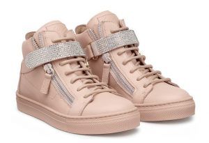 そして、クリスタルのついたレザースニーカーは、イタリアのブランド、ジュゼッペ・ザノッティ(Giuseppe Zanotti)の「ドーリー」。こちらはお値段約5万8,000円で、同じデザインの大人用も約10万円で販売されている。