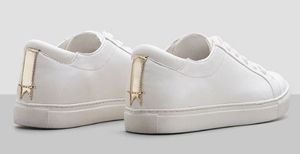 レーシーな白のワンピースに、Kenneth Coleのレザー白スニーカーをセット。ワンピの華奢さを白スニーカーで中和して。