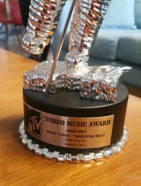 トロフィーの台座部分には、マイリーとジェシーの名前が彫られている。