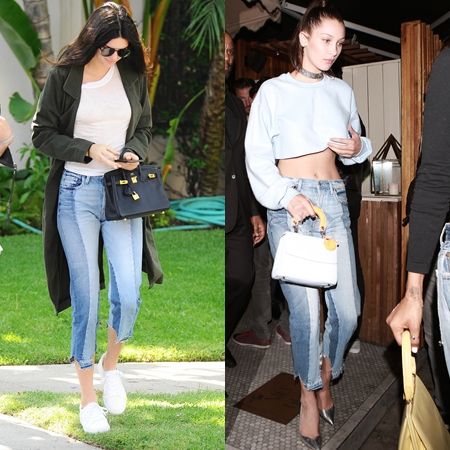 人気モデルのケンダルとベラは、Frame Denimのミックスデニムを愛用。ケンダルは白Tとスプリングコートでラフに、ベラはクロップトスウェットとパンプスで夜遊びスタイルに。