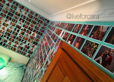 カーラの写真を保存してはお店で印刷してもらい壁にキレイに貼って行く作業を繰り返したliveforcaraは、「自由時間のほぼすべてをこれにあてて、少しずつ増やしていったわ」と、フロントロウ編集部にコメント。