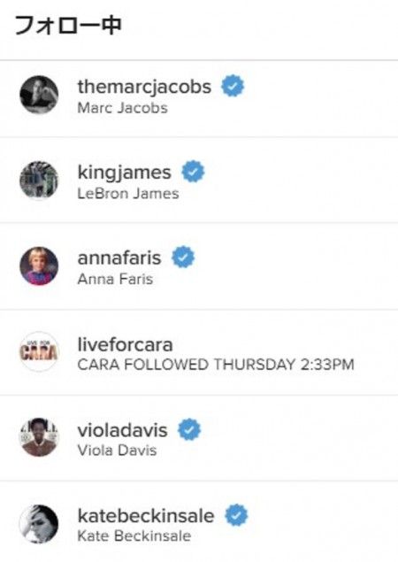 カーラのフォローリストで、セレブと肩を並べるliveforcara。