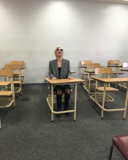免許センターで笑顔を浮かべるガガ。