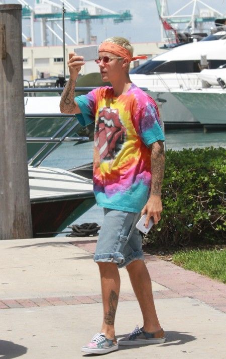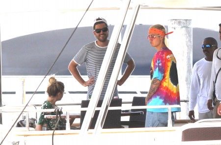 カジュアルなスタイルでマイアミの港に現れたジャスティンは、チャーターした巨大なヨットに乗船。