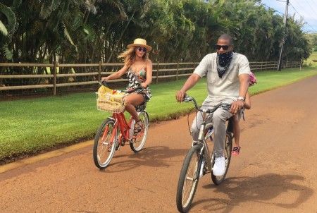 自転車でハワイを移動し自然を満喫している姿はまさに憧れの家庭像。
