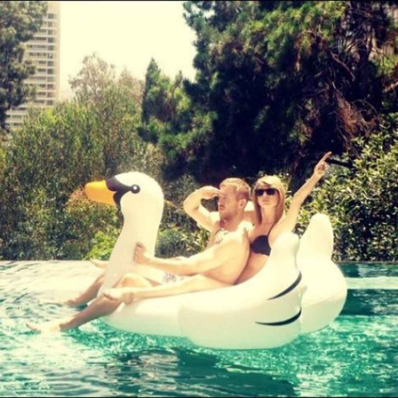 シンガーのテイラー・スウィフトとDJのカルヴィン・ハリスが使用して一気に大ヒットした、スイムライン(Swimline)の「Swan」フロート。同じく、日本のAmazonで並行輸入可。