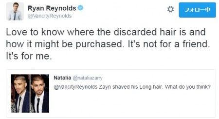 ライアン・レイノルズは元1Dゼイン・マリクの大ファン?