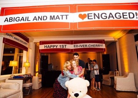 幼なじみと抱き合うテイラー。背後でキスをする、エドと彼の恋人の交際1周年記念も便乗して行われた。