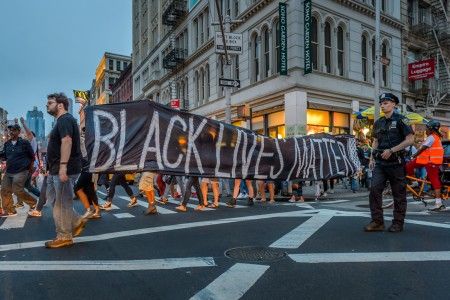 今週日曜に行われたNYでの抗議デモの様子。黒人系アメリカ人だけでなく、人種を問わずたくさんの人々が参加。