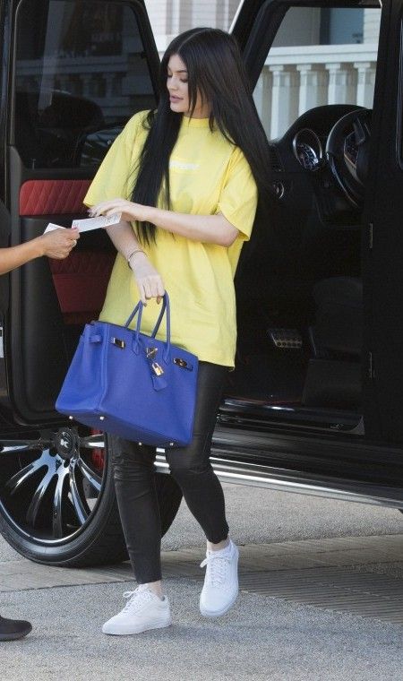 いつもダークな色を着ているイメージがあるカイリーもこの夏はヴィヴィッド・カラーに夢中。イエローのSupremeのメンズTシャツにHermèsのブルーバッグをぶつけて色のコントラストを楽しんで。