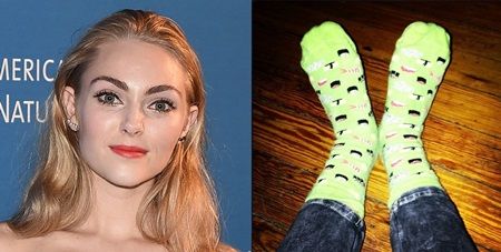 ドラマ『セックス・アンド・ザ・シティ』の主人公キャリーの若い頃を描いたドラマ『マンハッタンに恋をして~キャリーの日記』の主演女優アナソフィア。寿司柄というザ・日本なソックスをゲットして、ご満悦。
