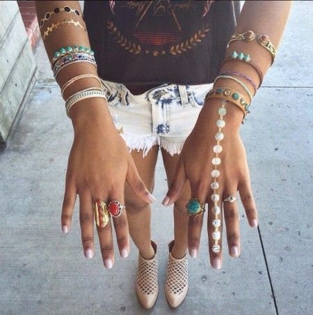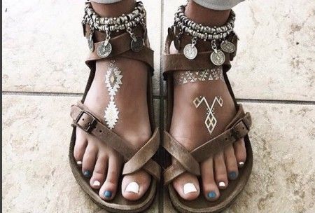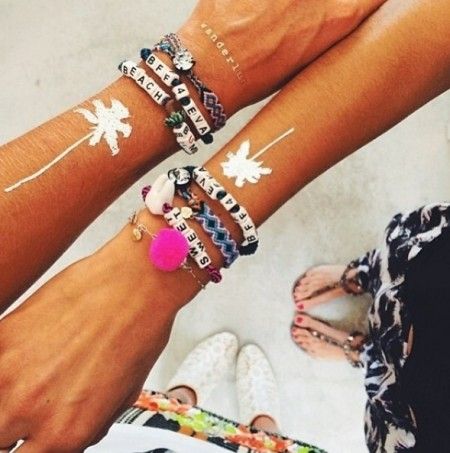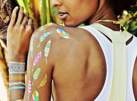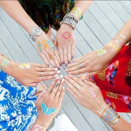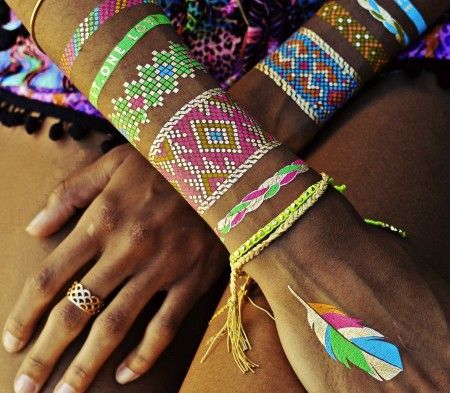 バングルをつけるように、簡単にワンポイントとしてつけるだけでフェス気分がさらに盛り上がる。上級者は、アクセの重ねづけのようにフラッシュタトゥーの重ねづけをしてみて。