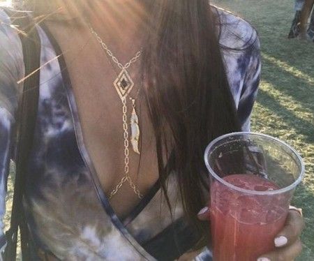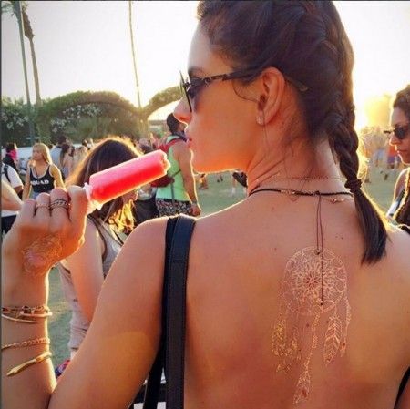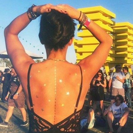 フェスでは背中を露出したスタイルを着ることも多いはず。そんな時は、広く開いた背中にフラッシュタトゥーをつければバックスタイルも華やかに。