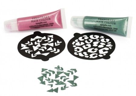 ブームに乗って、最近ではステンシル型とテンポラリーカラー(1日染め)がセットになった商品も販売されるほど。