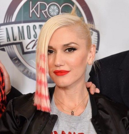 シンガーのグウェン・ステファニーも前髪部分にシンプルなボーダーのヘアステンシルを。