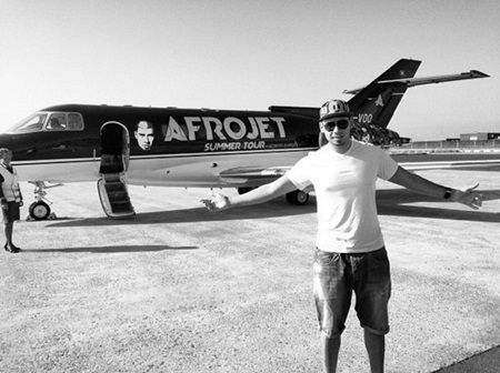 移動はプライベートジェット。アフロジェット(AFROJET)と塗装されたジェットに乗る。