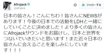 グラミー賞受賞歴がありウルトラをはじめ大型EDMフェスの常連でもあるオランダ出身の音楽プロデューサーのアフロジャックが、EXILEが所属するLDHとマネージメント契約を結んだことを発表。