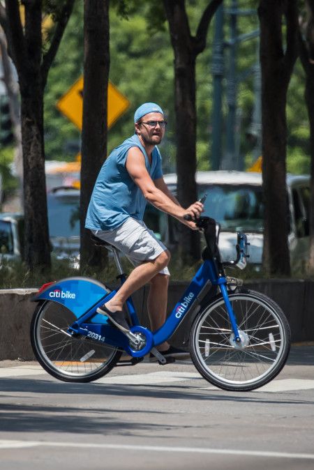 オスカー俳優でエコ推奨しているレオナルドは、シティバイク愛用者の一人。NYに来ると街をぶらりとサイクリング。