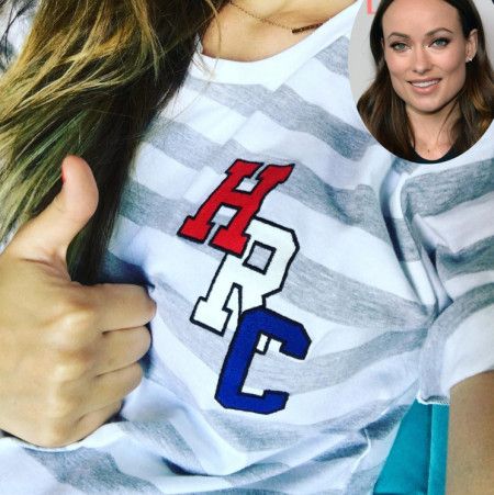映画『トロン:レガシー』の女優のオリヴィアは「アメリカを暗かった歴史へと後退させるのではなく、11月にヒラリー氏を当選させましょう!」とこのTシャツを着てSNSのフォロワーたちに呼び掛けた。