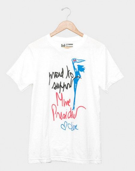 セレブたちも愛用しているこれらのTシャツはヒラリー氏のオフィシャル・オンラインショップで日本からも購入が可能。今年しか販売されない物なので、欲しい人はチェックしてみて。