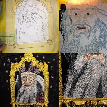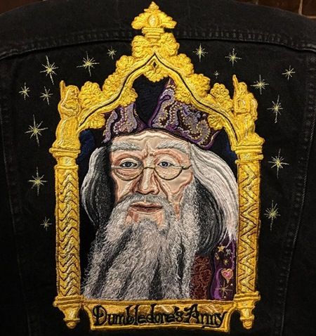 アリアナがインスタグラムで自慢したジャケットには、背中部分にダンブルドアの姿と「ダンブルドア軍団」という言葉の刺繍が。