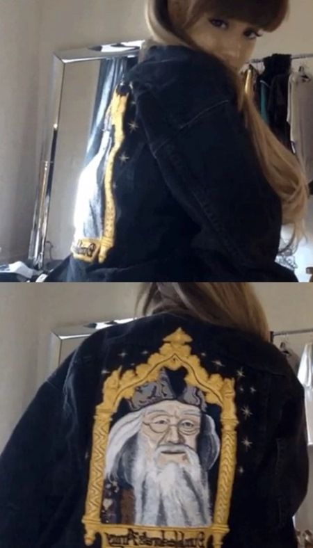 ファンタジー大作『ハリー・ポッター』の大ファンであるシンガーのアリアナ・グランデが、作中に登場するダンブルドアのイラストが刺繍された新しいジャケットを披露した。