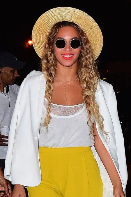 アイウェアブランドOliver Peoplesがオルセン姉妹手がけるファッションブランドのThe Rowとのコラボでリリースした人気モデル。ビヨンセは夏らしいストローハットと合わせて。