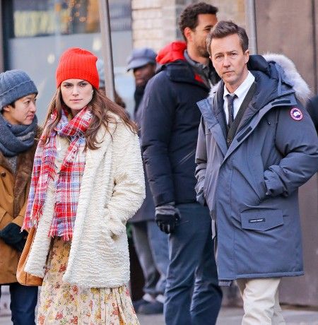キーラは今年12月全米公開予定の映画『コラテラル・ビューティ』に出演。右の男性は共演者の俳優エドワード・ノートン。