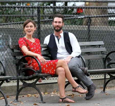 『はじまりのうた』撮影中のキーラとアダム。