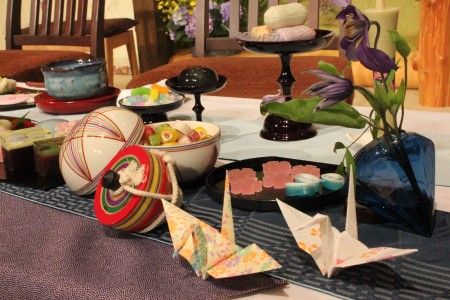 今回のお茶会見は、「和」を意識した演出。会場も異例の畳式にされ、記者席はお茶屋のようなスタイルに。そして来日ゲストが座ったテーブルには、日本各地から集められた名産品が並べられた。