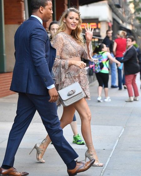 PR初日の月曜日(6月20日)、ブレイクはまず、朝の生番組『トゥデイ』に出演するためにElie Saabのヌードカラーのミニドレス姿でホテルを後に。