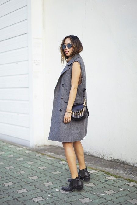 タートルネックノースリーブにスリーブレスコートをレイヤードし、ラウンドサングラスを合わせたモードなスタイルには、チャームがついたミニサイズの「Hudson」でチャーミングな味つけを。