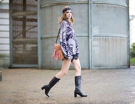 サイケデリック柄のチュニックとペイズリー柄のバンダナでつくったヒッピースタイルは、マルチカラーのフリンジがついた「Hudson」で今年顔にシフトして。