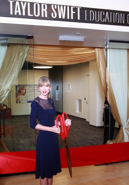 テイラーが訪れたのは、2013年に彼女が約4億円を寄付して、カントリー・ミュージック殿堂博物館内にオープンした音楽学校。音楽やアートなどのプログラムが行われているほか、エントランスにはテイラーが実際にツアーで着用していた衣装やギターなども展示されている。