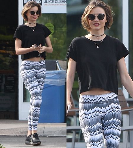 幾何学柄レギンスと黒Tのスポーティーなスタイルを、Carbon&Hydeのチョーカーでエッジーに。