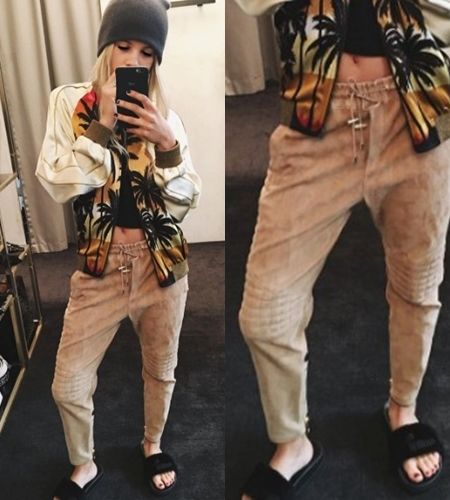 SaintLaurentのブルゾンやBalmainのジョガーパンツなど、トレンド感満載なコーディネートに、Pumaのファースライドサンダルを加え、さらに今年っぽさを加速させて。