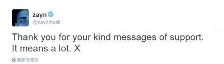 ファンたちの温かい言葉にゼインは「心優しいメッセージとサポートに感謝するよ。とても有難いよ」とコメント。