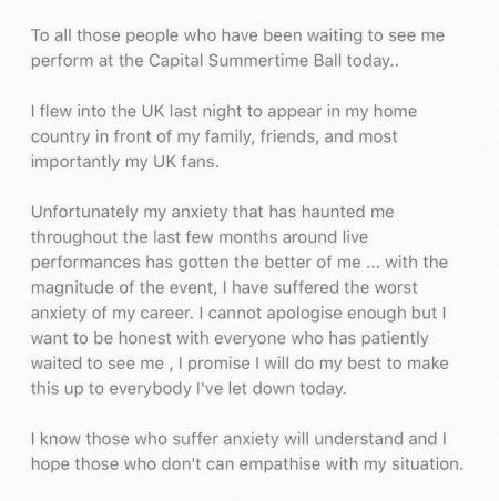 ゼインが急遽出演を取りやめたのは、人気ラジオ局、キャピタルFM主催の「キャピタル・サマータイム・ボール」。ゼインのパフォーマンスは、アリアナ・グランデやニック・ジョナス、リトル・ミックスら19組もの豪華アーティストたちが出演した同イベントの目玉として予定されていた。