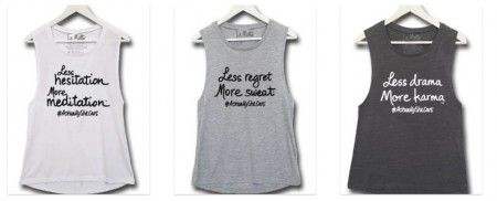 より幸せな人生を送るために「減らす・増やす」べきものが描かれたこのタンクトップ。メッセージの内容は3種類あり、以下がその訳。